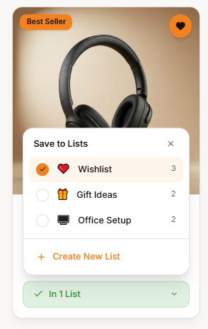 v0 had a similar take on the list redesign after I inputted a few pain points with the current design. It incorporated a Heart Icon on each product card and had an almost identical “Save to Lists” feature.