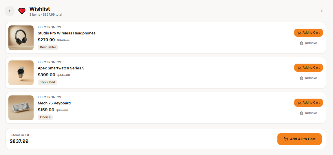 Implemented a prominent, animated Heart Icon on all product cards. Using Figma Make’s prototyping, I ensured instant visual feedback (color fills and count badges) to validate user actions without taking them away from their browsing flow.